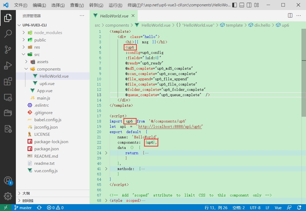 在您的组件中引入up6组件