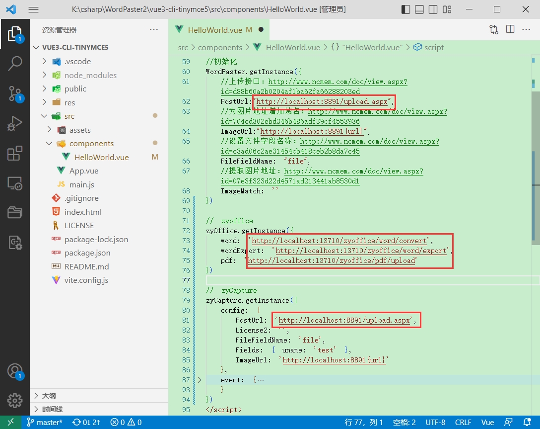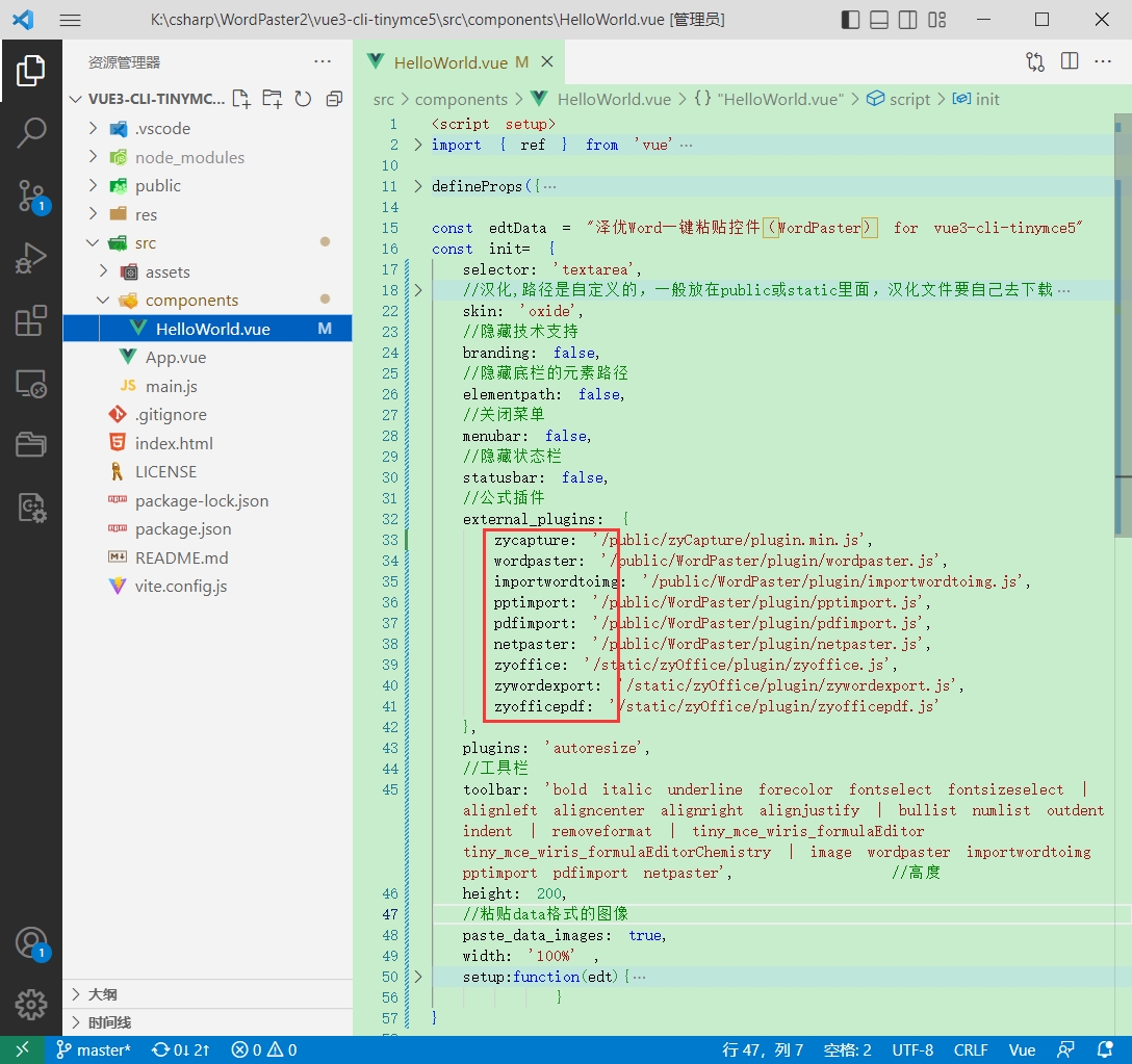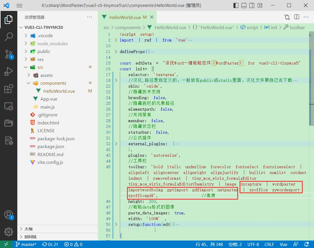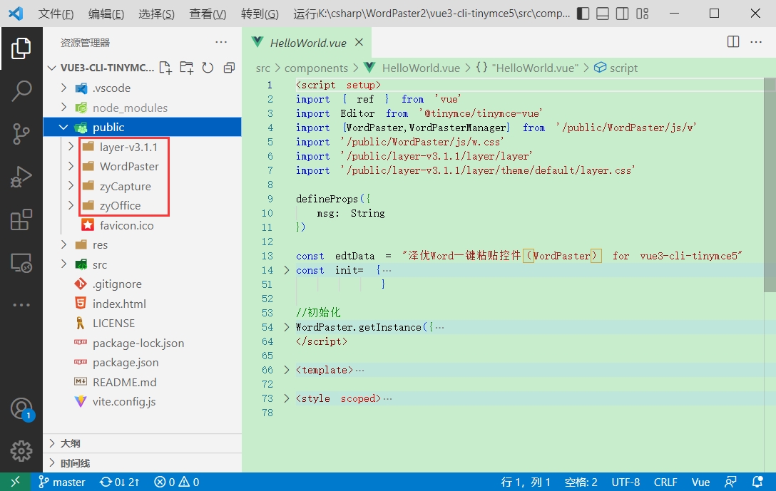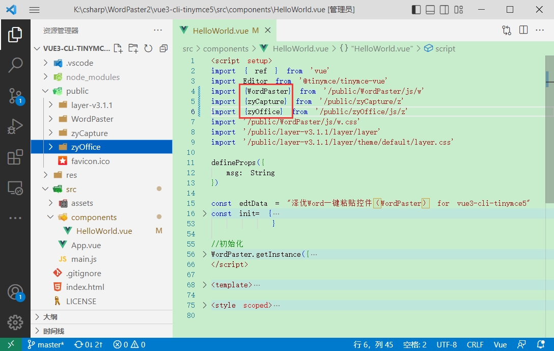 示例:https://gitee.com/xproer/zyoffice-vue3-tinymce5