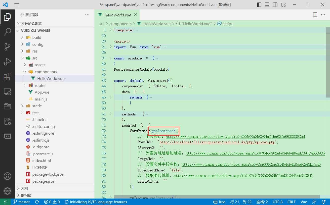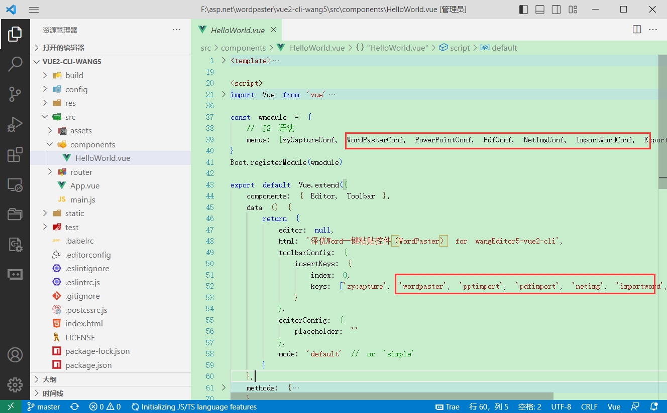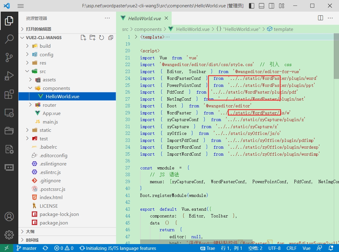 在编辑器页面,或者VUE组件中导入WordPaster组件